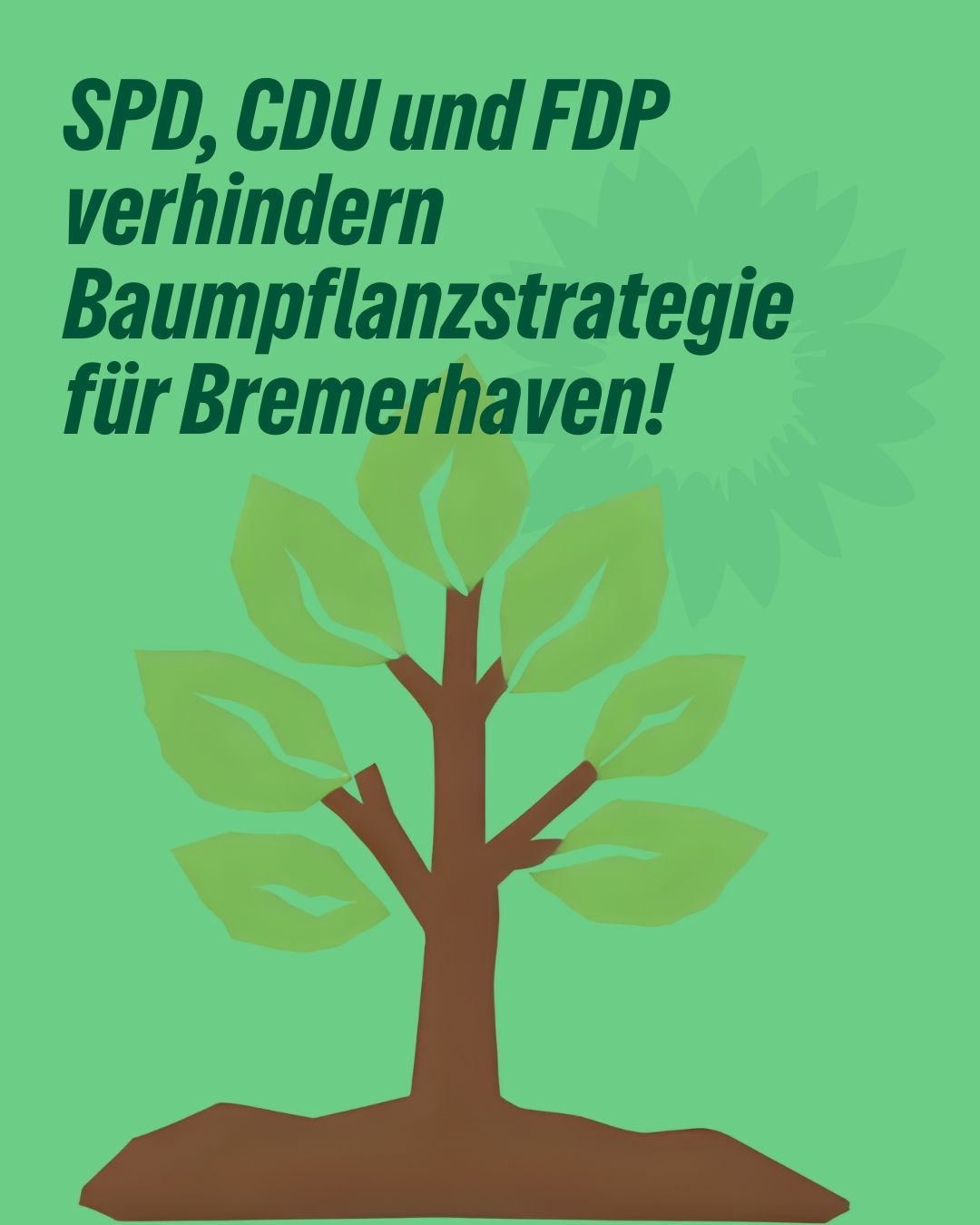 In der Stadtverordnetenversammlung am 4. Dezember hatte die Fraktion Bündnis 90/DIE GRÜNEN + P eine Baumpflanzstrategie für Bremerhaven beantragt. Auf diesem Weg wollten GRÜNE + P erreichen, dass mehr Bäume gepflanzt und die Kosten hierfür gesenkt würden. Dies fand bei den Stadtverordneten allerdings keine Mehrheit.